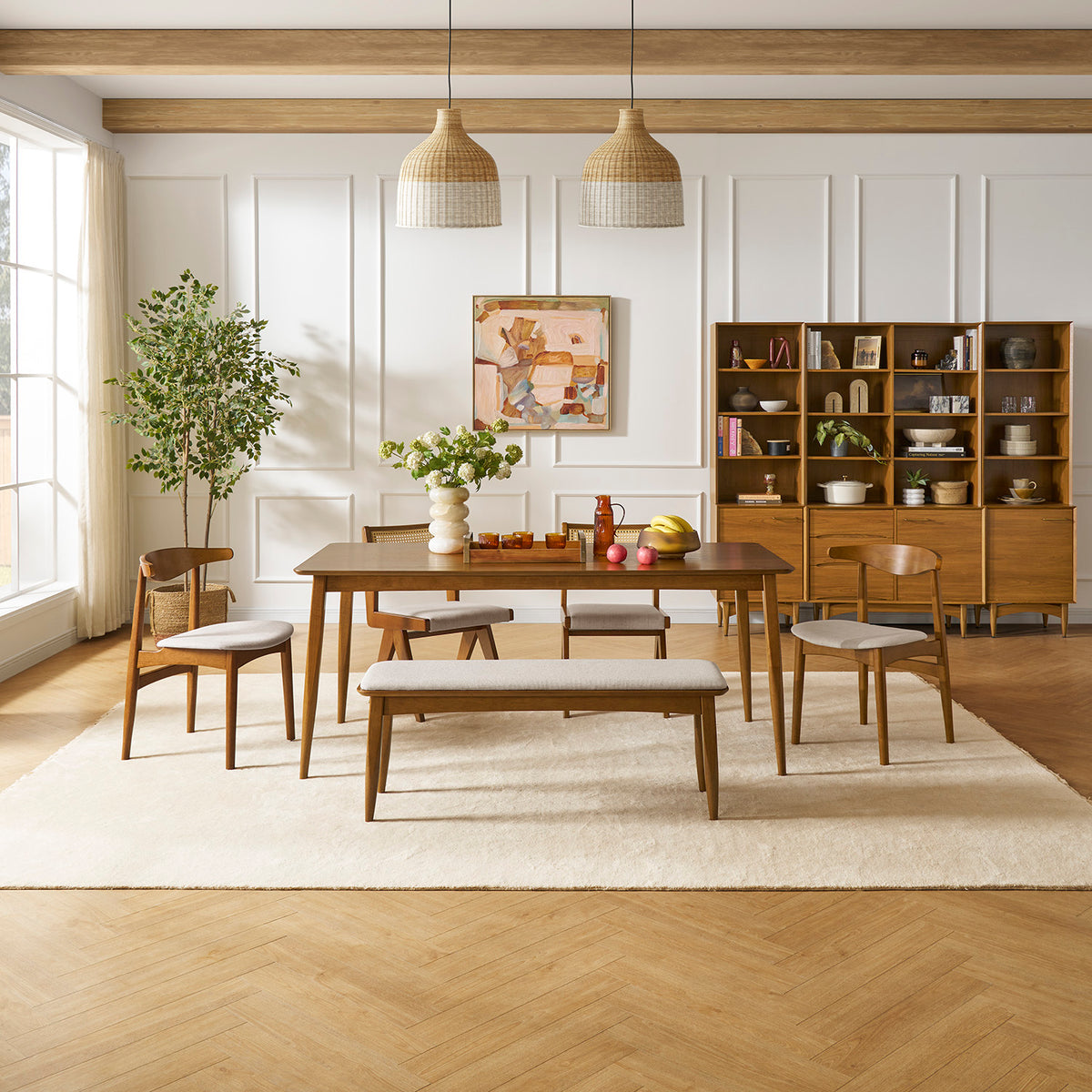 Retrovie Mid-Century Modern 71" Dining Table Set for 6