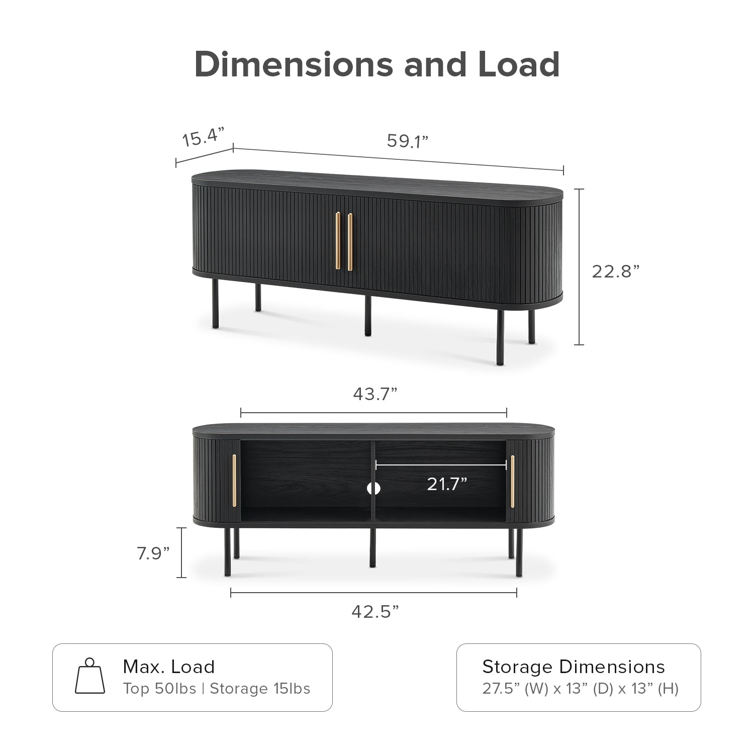| Dimensions | 59.1 (W) x 15.4 (D) x 22.8 (H) inches |