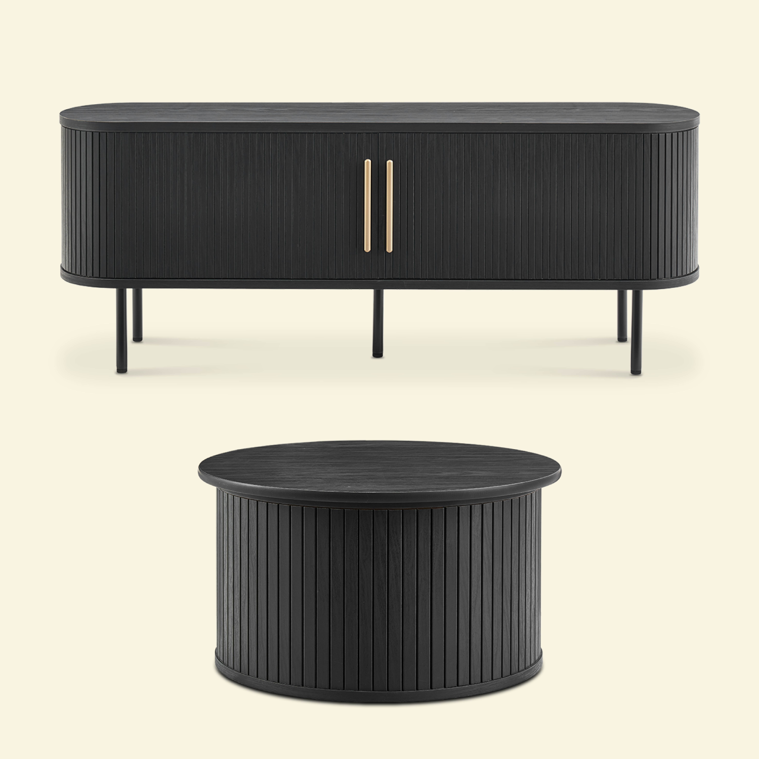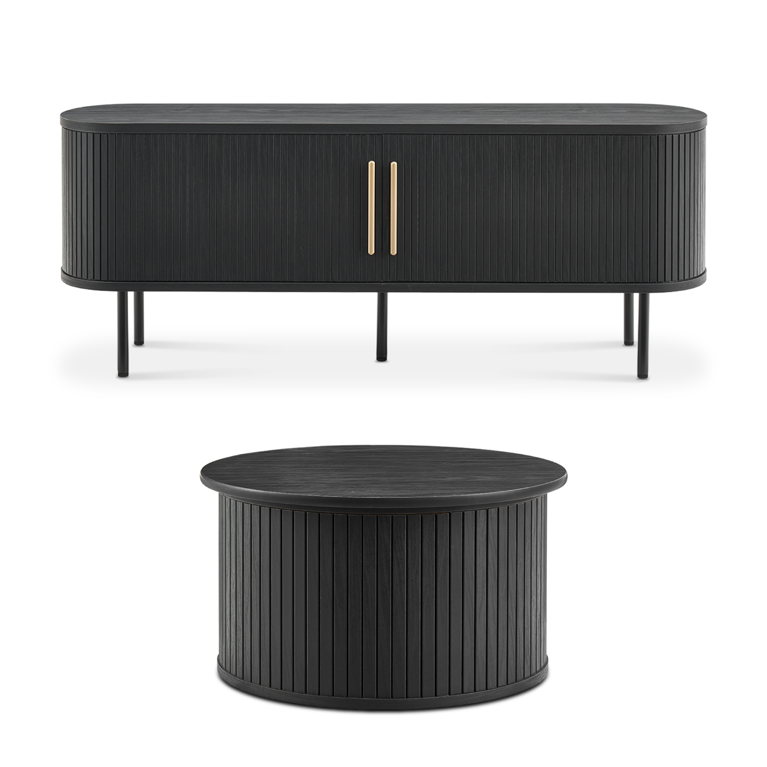 Quin 59" TV Stand & Coffee Table, Black Oak