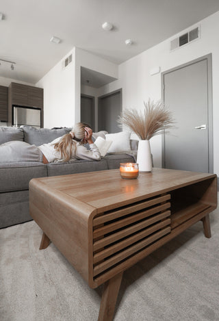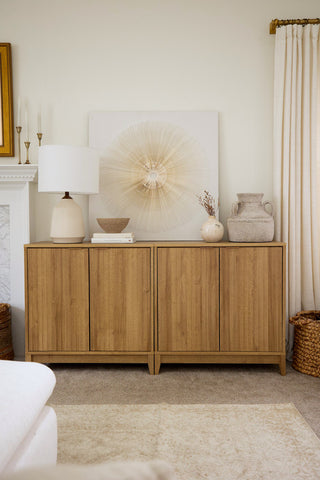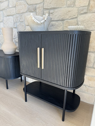 - Eclectic Mix of Modern Farmhouse & Industrial Styles: Fluted panels and textured riviera oak laminate finish set against powder-coated black iron frame, create a bold and contrasting look.