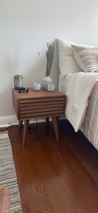 This nightstand will add great style to your room. The color, material and style are 100% perfect!. Easy to assemble. Absolutely recommend– Luis Navarro