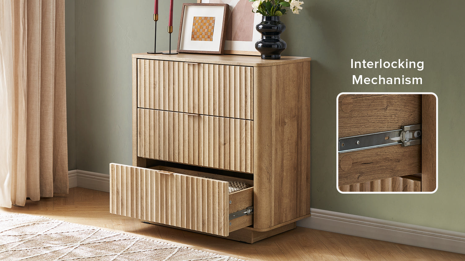 Brooklyn 3-Drawer Dresser [Interlocking Mechanism]