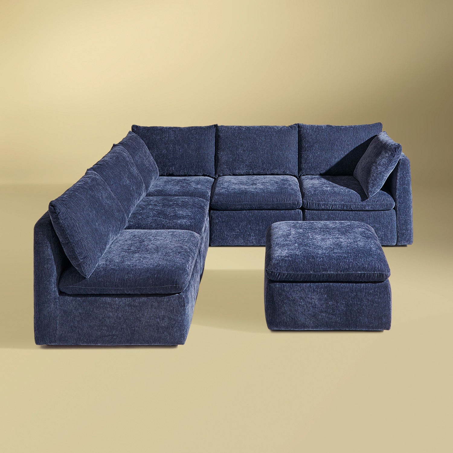 Made from plush chenille that catches the light and gives a gentle sheen. Rich and soft to touch, it’s THE material for lounging.