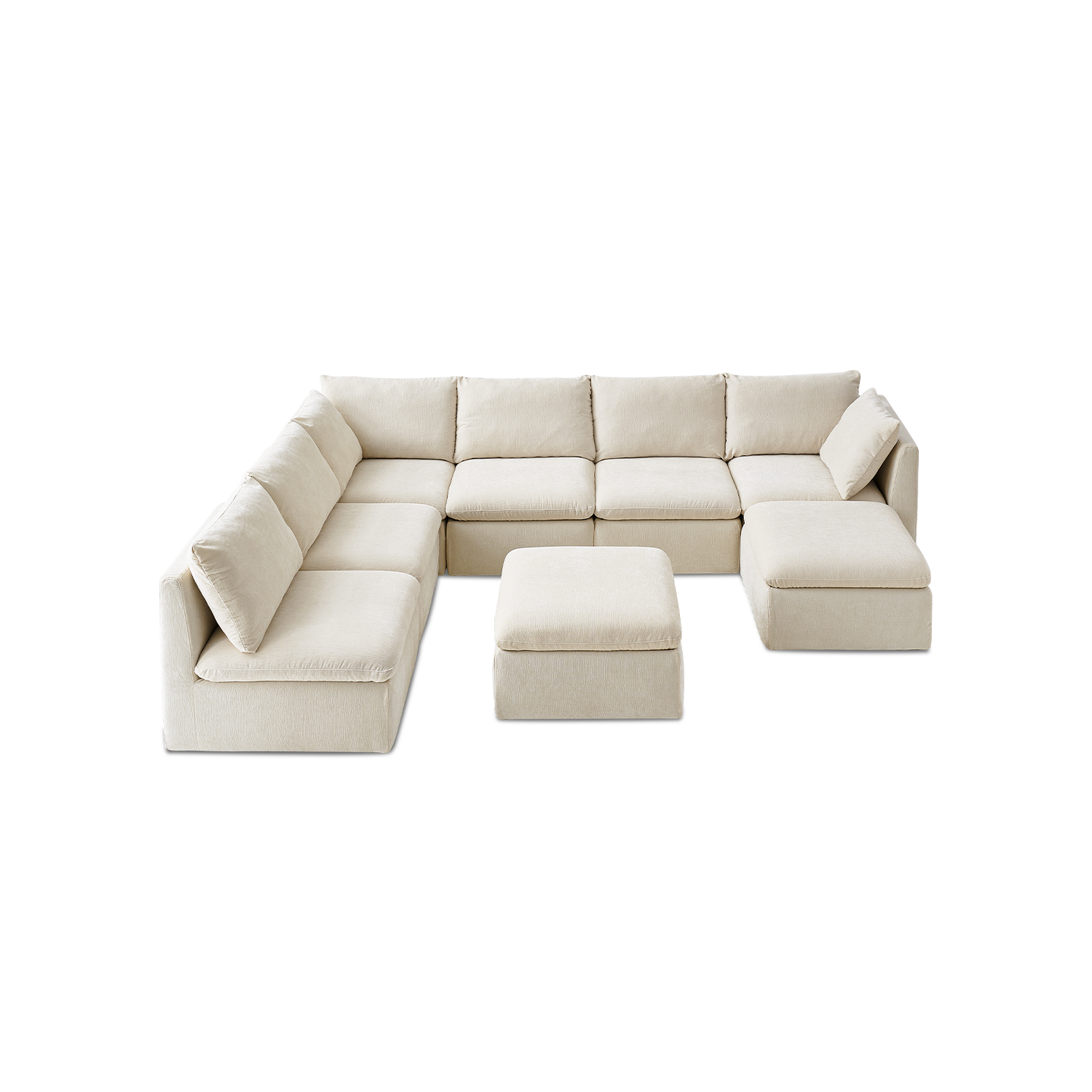 6 x Armless Seat 1 x Armrest Set (consists of 2) 2 x Ottomans |