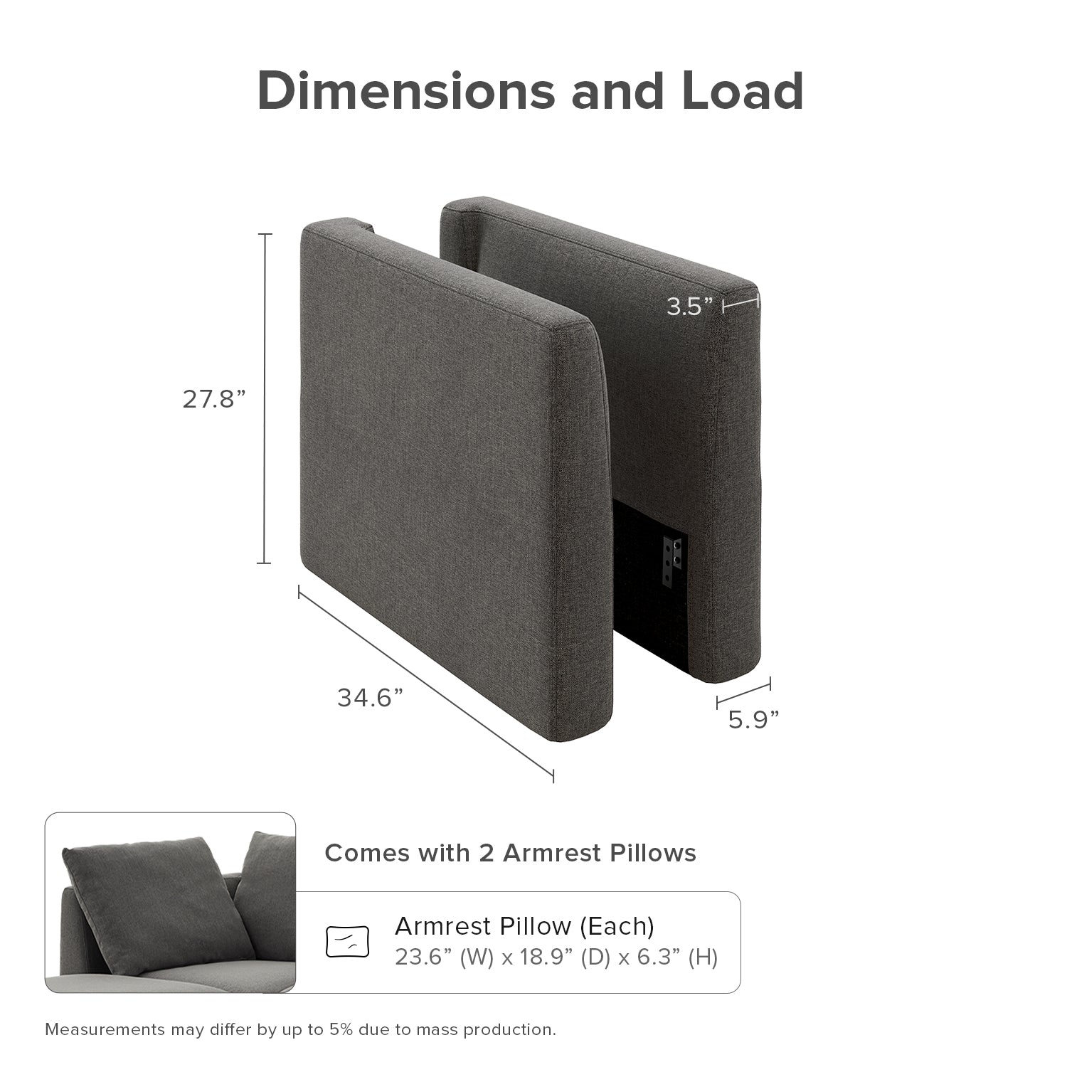 3.5 (W) top of armrest | 5.9 (W) bottom of armrest x 34.6 (D) x 27.8 (H) Inches