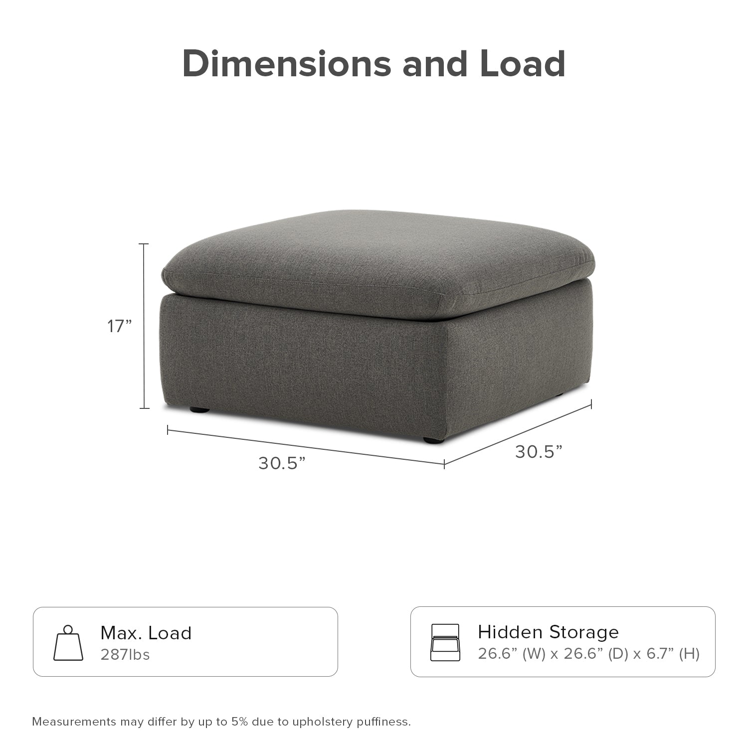 | Ottoman | 31.9 (W) x 31.9 (D) x 12 (H) inches / 51.8 lbs |
