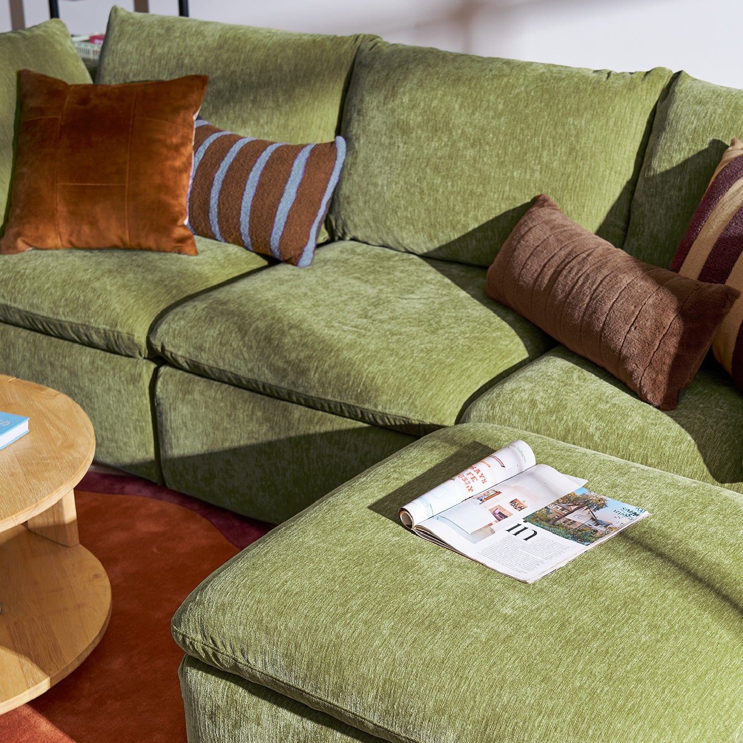 Made from plush chenille that catches the light and gives a gentle sheen. Rich and soft to touch, it’s THE material for lounging.
