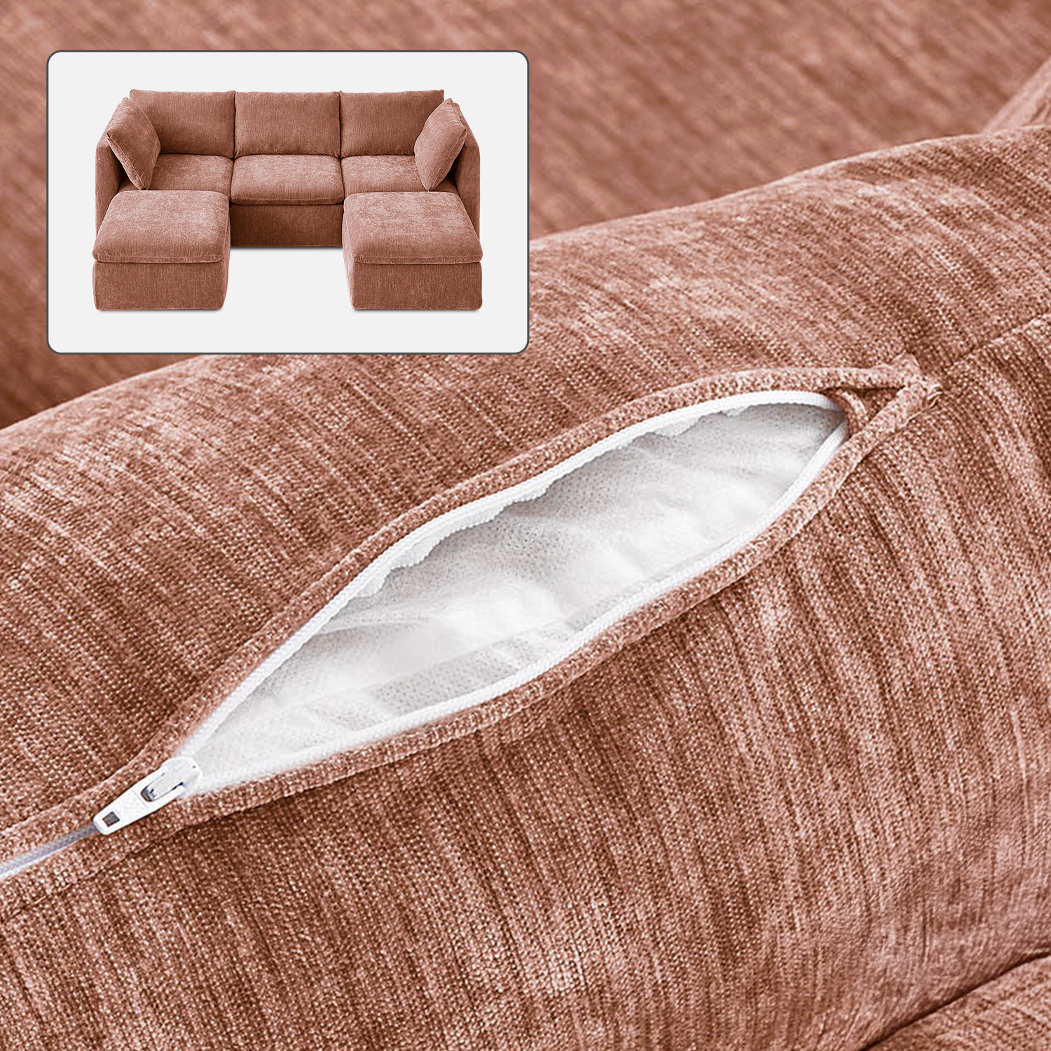 Macy Washable Slipcover Only (5 Seats), Rust Peach Red Chenille