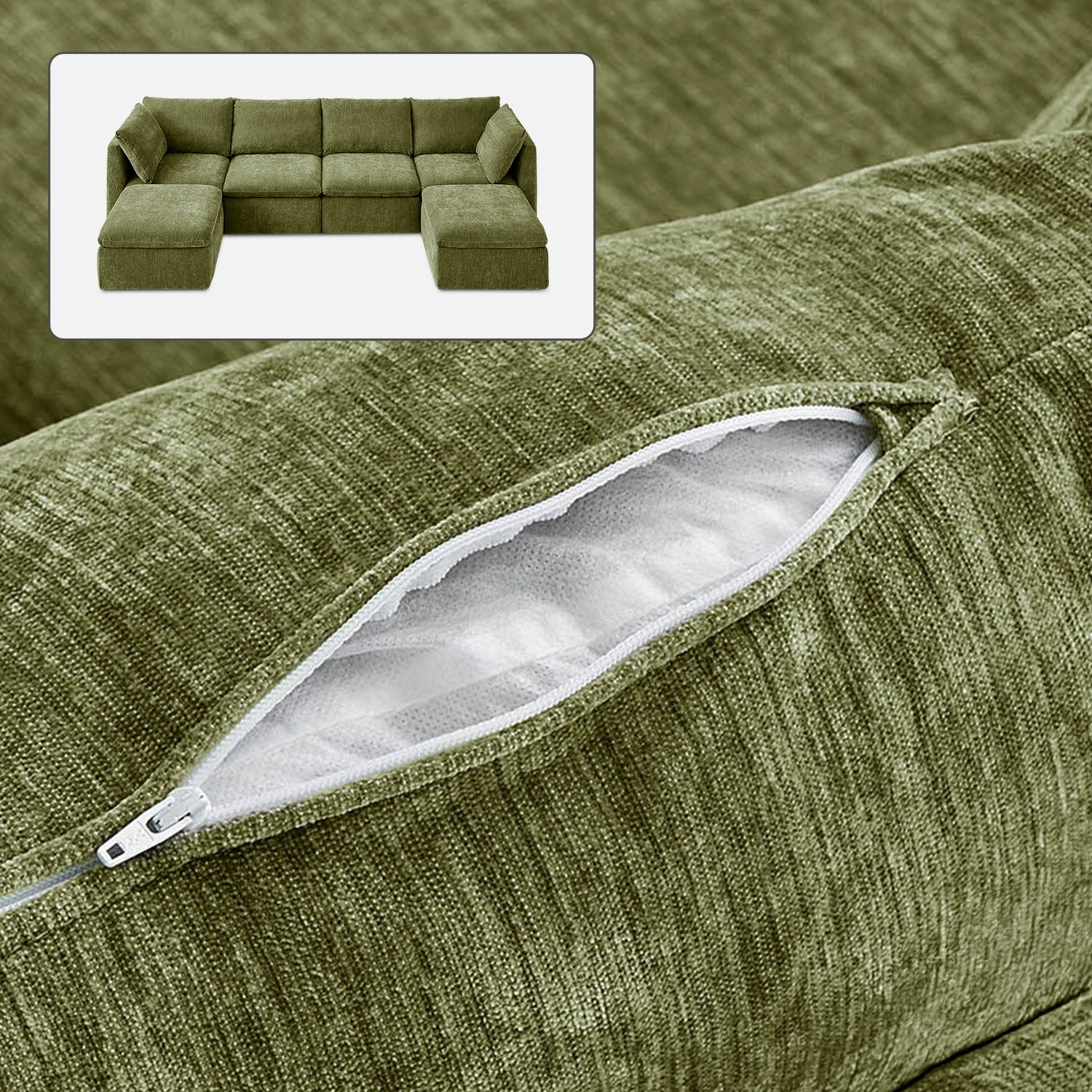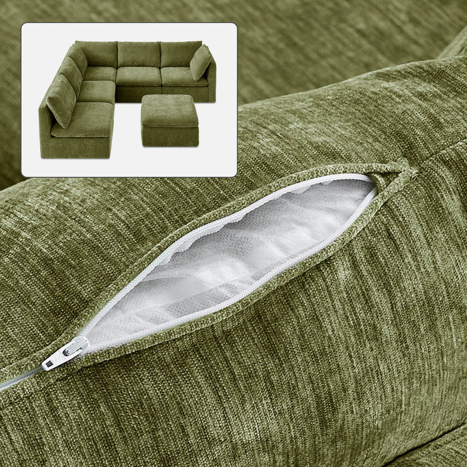 Macy Washable Slipcover Only (6 Seats), Moss Green Chenille
