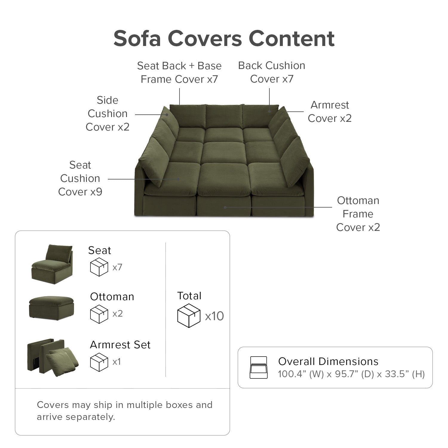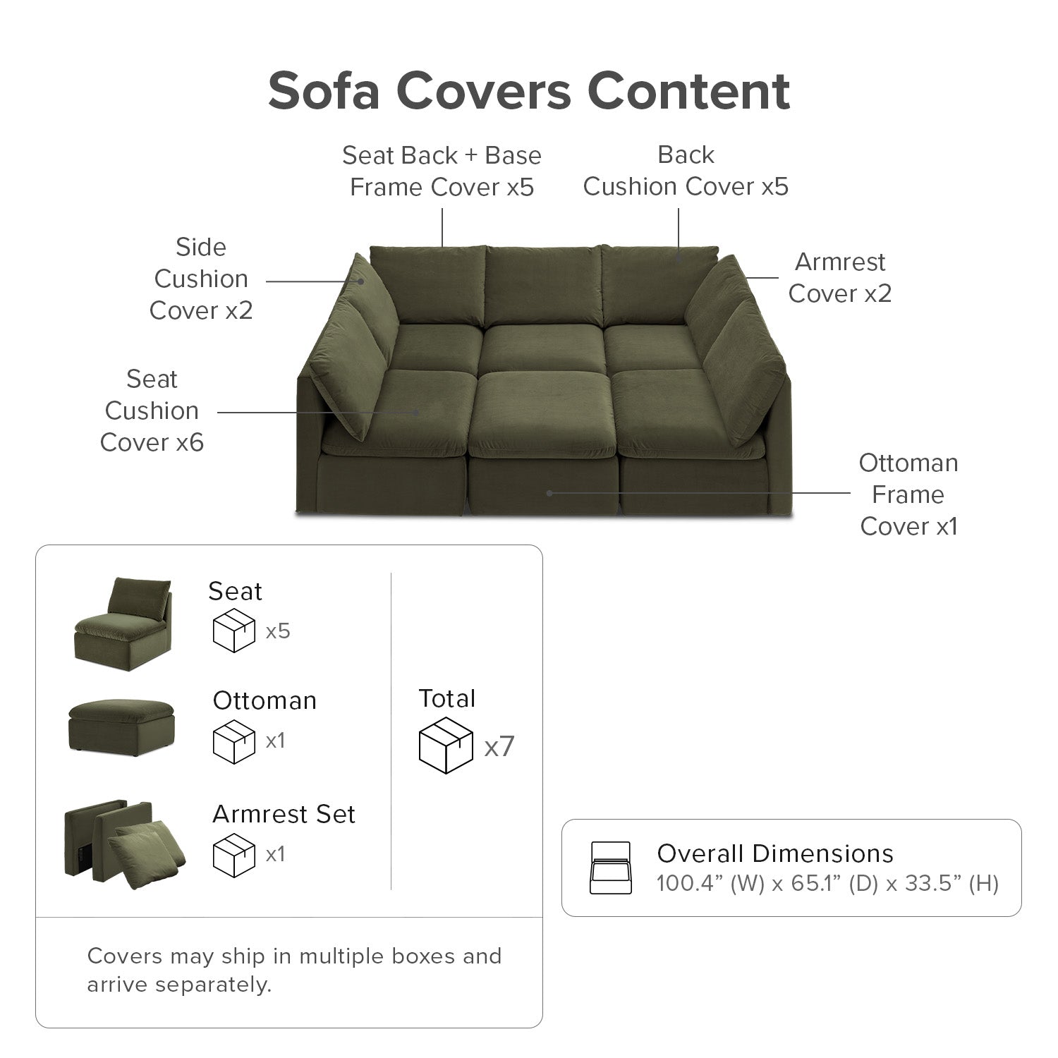 100.4 (W) x 65.1 (D) x 33.5 (H) Inches |