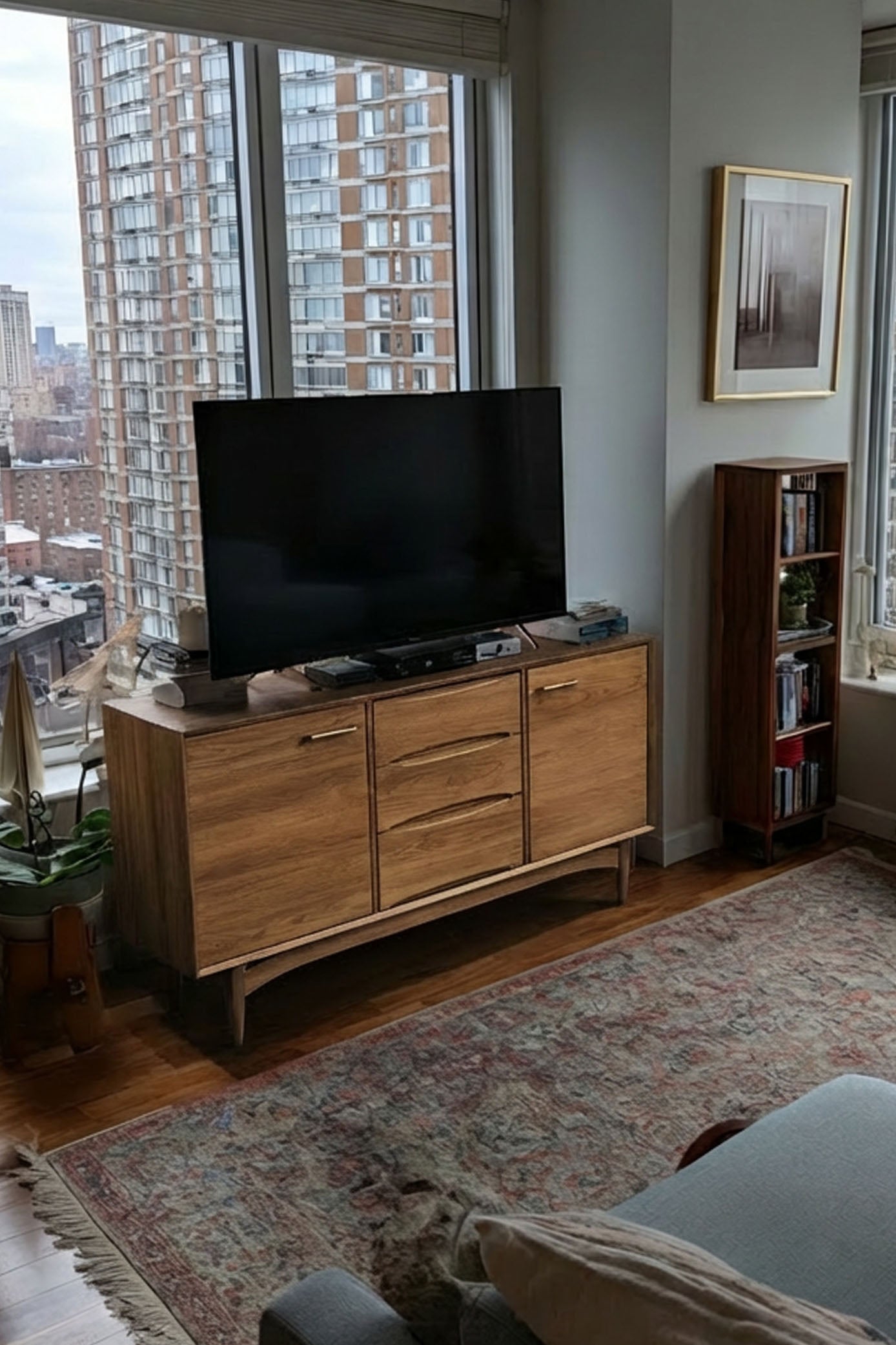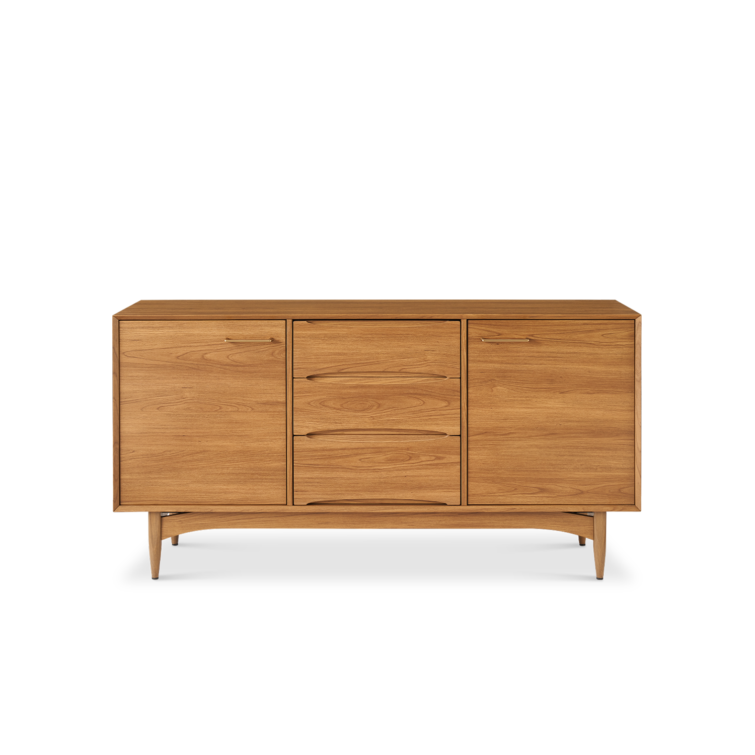 A sideboard that stays by your side, from first apartments to growing spaces. Designed in a mid-century modern style with retro accents, it fits in your living room, bedroom or as a media cabinet. This is a storage shelf that’s able to handle your life.