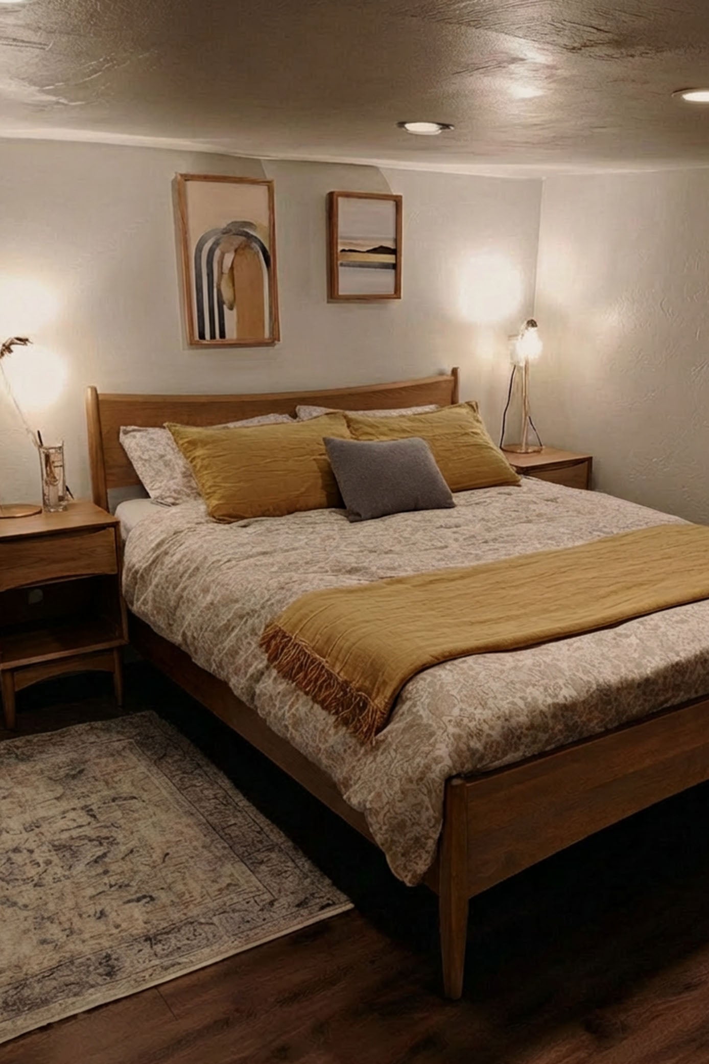 Curved headboard, chamfered edges, and tapered legs adds warmth and elevates your bedroom.​