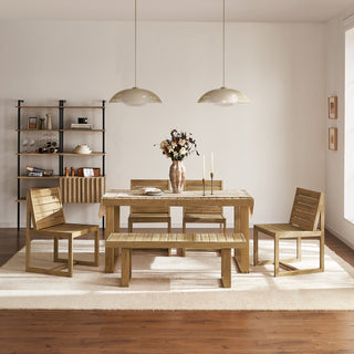 Crafted from solid acacia wood, build a dining set that adapts to your needs, with spacious seating for up to eight.